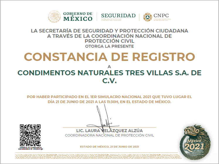 Constancia Nacional por participar en el 1er  Simulacro Nacional